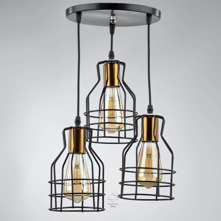 3R1025 Black Three Glass Cup Pendant Chandelier by i-Outstanding, Polyester