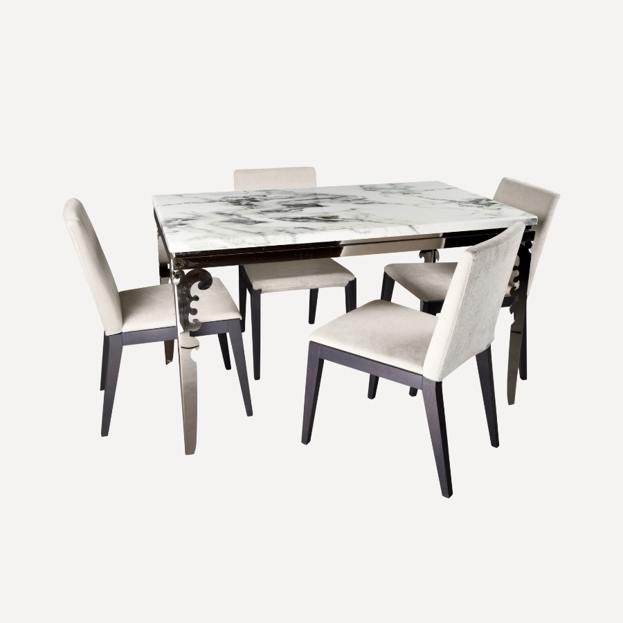 【Materials Used】The table is made of 100% natural wood, the bottom and side parts of the table are made entirely of 4 cm Romanian red beech wood, the top of the table is made of first-class natural plywood with a Turkish HPL layer that is resistant to heat, water and scratches, the chairs are made of 4 cm Romanian red beech, the back of the chair is made of first-class plywood, the upholstery sponge is Take Soft, density 33, the fabric used is treated reversed leather for easy cleaning.