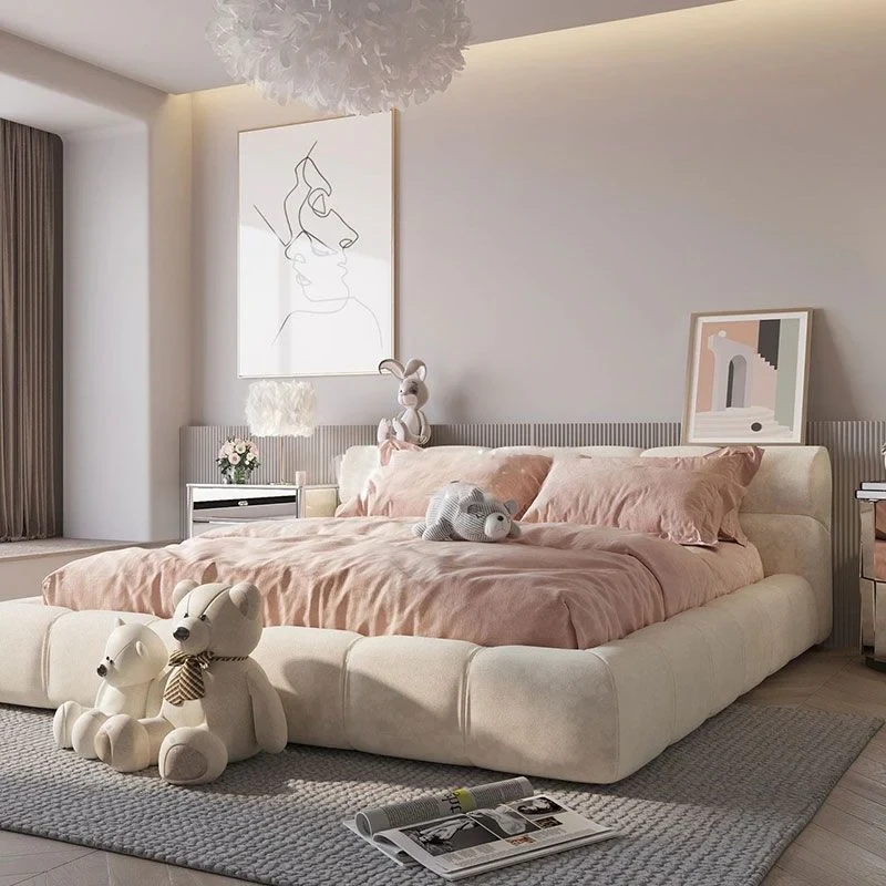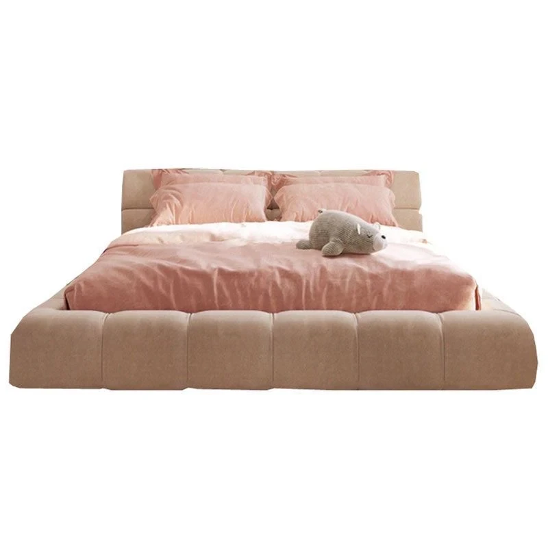 1. **Luxurious Upholstered Design**: The bed frame is beautifully upholstered in a soft, plush fabric, adding a touch of luxury and elegance to any bedroom décor.