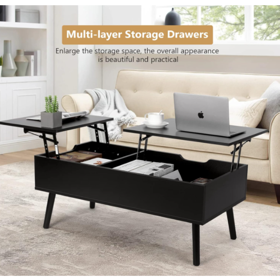 Ample Storage Space: This practical coffee table provides you with two additional hidden storage compartments to store your daily items in style as well as cover your storage needs.