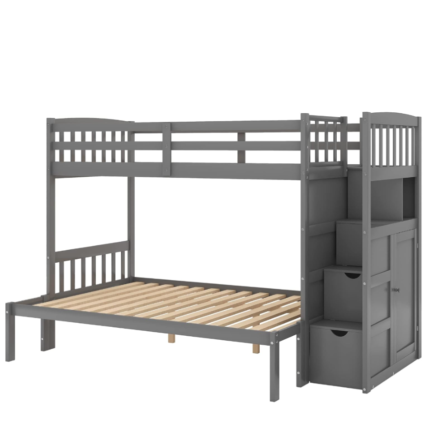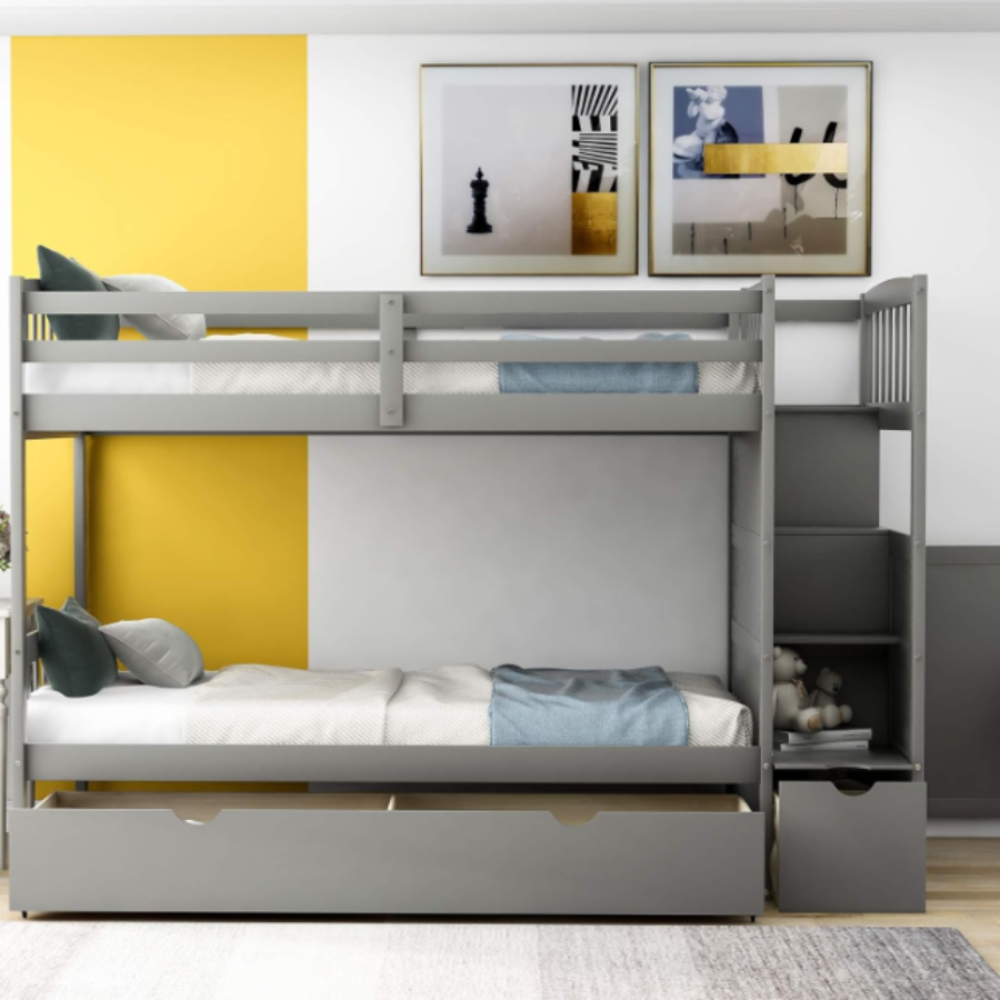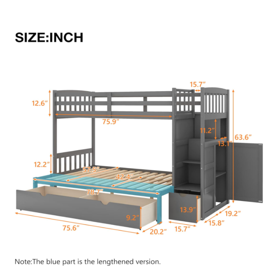 This bunk bed features two beds to accommodate your family or anyone who sleeps overnight. The unique detachable feature allows the bunk bed to be converted into two independent beds, providing more fun and spacious space. No box spring needed. Moreover, there are a variety of classic colors for you to choose from, which you think will fit your kids bedroom the most.