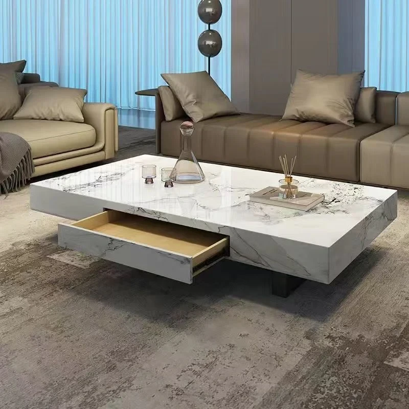 - The combination of practical storage with a stylish, marble-finished surface makes this coffee table both a functional piece of furniture and a decorative statement for any living space.