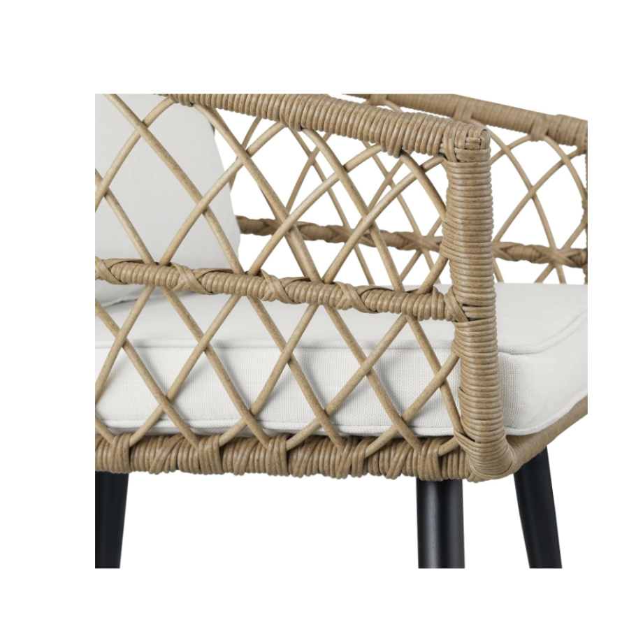 Handwoven from natural dark beige all weather resin wicker with heavy duty rust resistant aluminum frame for years of long lasting use