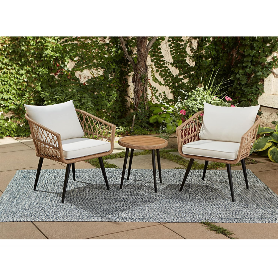 Inspired by bohemian style, the Hermosa 3-Piece Outdoor Chat Set includes two deep seating chairs and a distinctive round table.