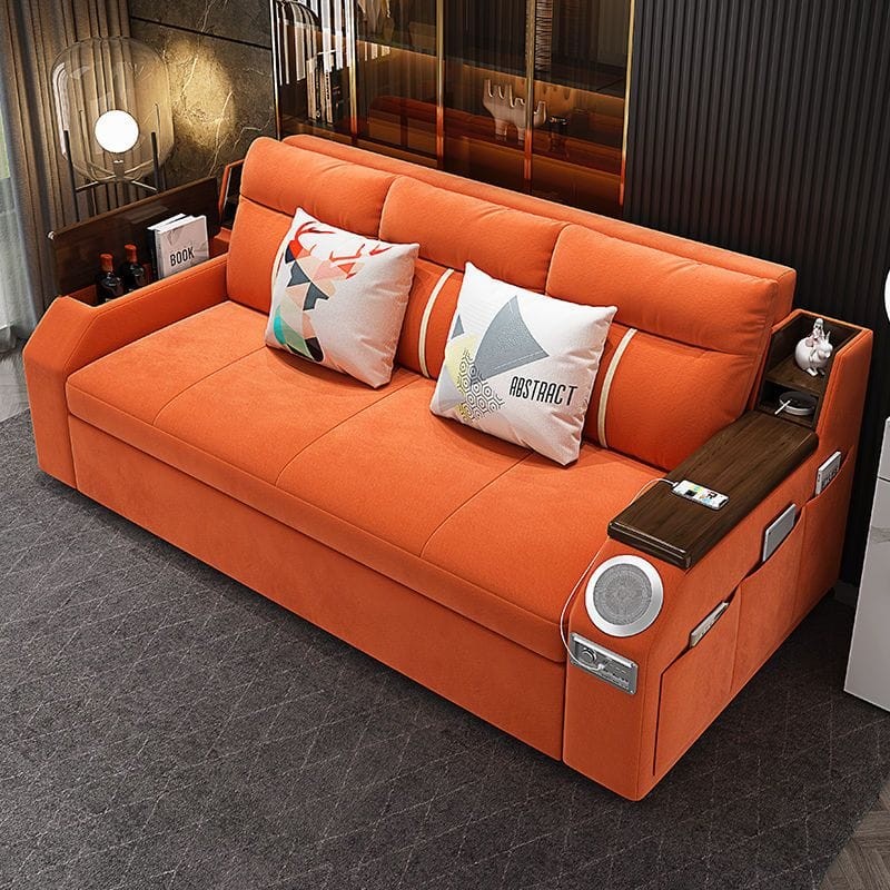 Modern Adjustable Sofa Bed with Side Pockets, with Down and Side Storage, USB Ports, Bluetooth, Speaker