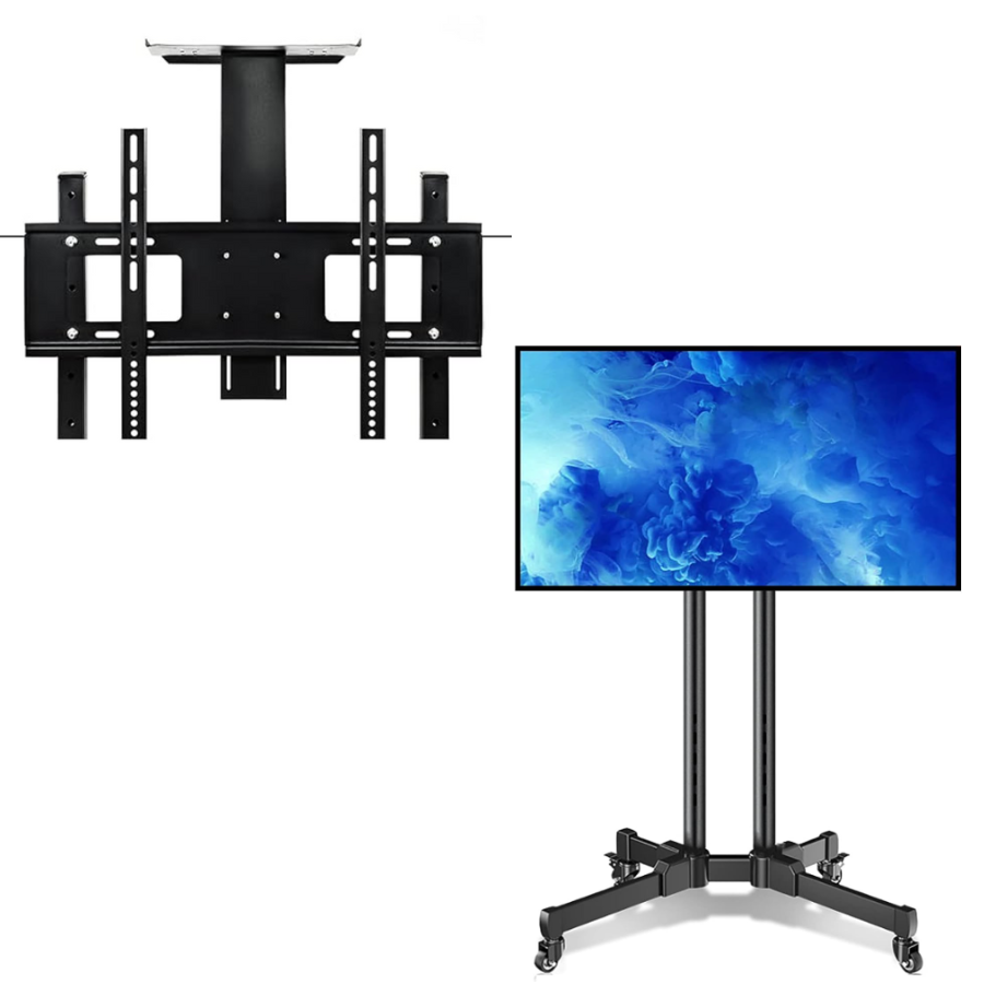 EASY TO INSTALL: Universal TV mount / tabletop mount for mounting TV and video components on an entertainment center or desk/table. Quick and easy installation with provided mounting hardware, within 15 minutes.