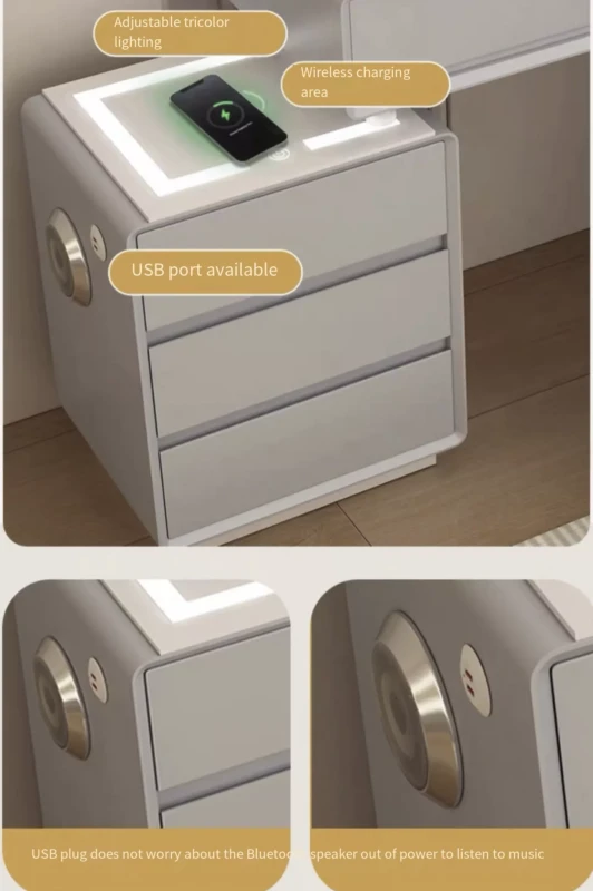 This dressing table is a perfect blend of technology and style, offering both functionality and elegance to elevate your bedroom or dressing room setup.