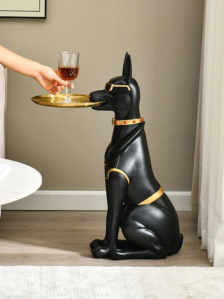 1. **Unique Design:** Eye-catching dog statue design with sunglasses and a collar, serving as a stylish decorative piece for any room.