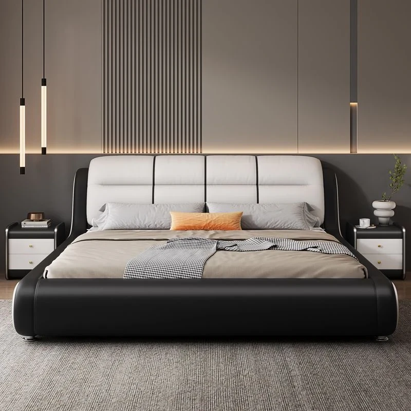 This leather bed with storage combines contemporary style with practical functionality. The bed features a sleek, upholstered leather frame available in multiple color options, allowing you to match it seamlessly with your existing decor. The rounded edges of the frame add a modern touch, while the sturdy build ensures durability and support.