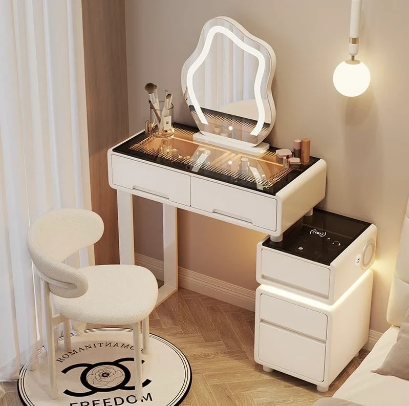 This dressing table combines modern technology with elegant design, making it a versatile and practical addition to any bedroom or dressing area.