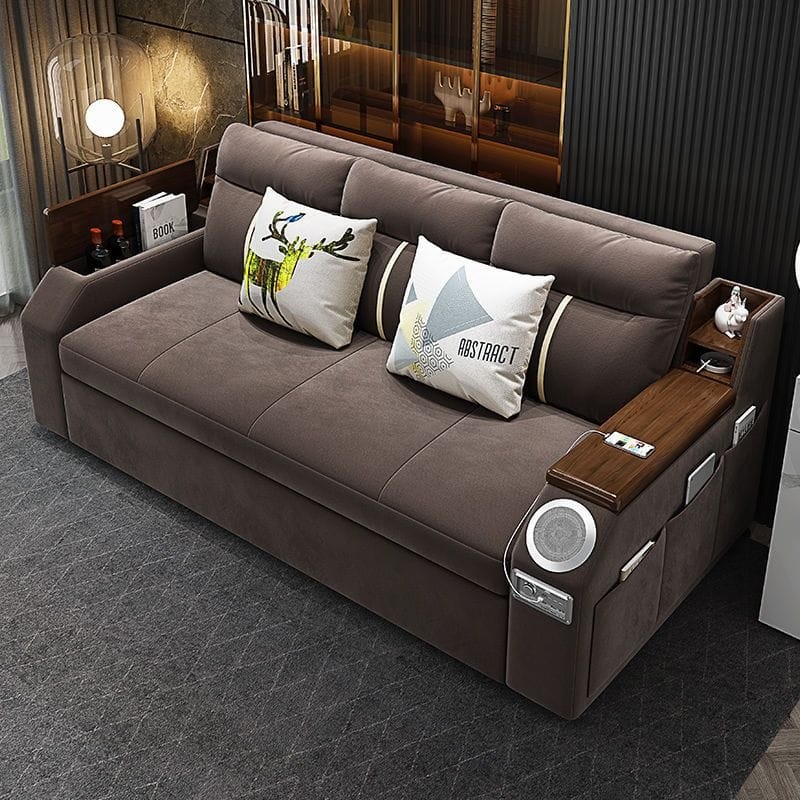 Modern Adjustable Sofa Bed with Side Pockets, with Down and Side Storage, USB Ports, Bluetooth, Speaker
