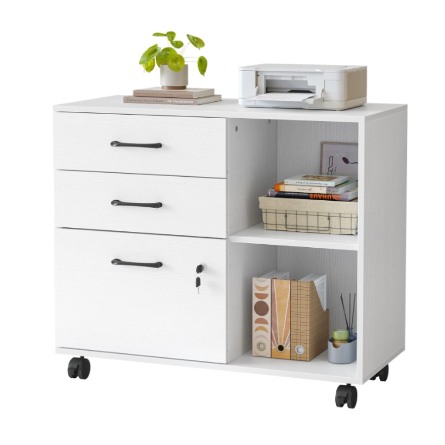 Ample Workspace: The spacious desktop of the file cabinet can accommodate your printer or scanner, while the home office file cabinets and two open storage shelves make it easy to isolate the space based on your usage.